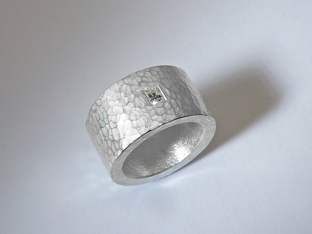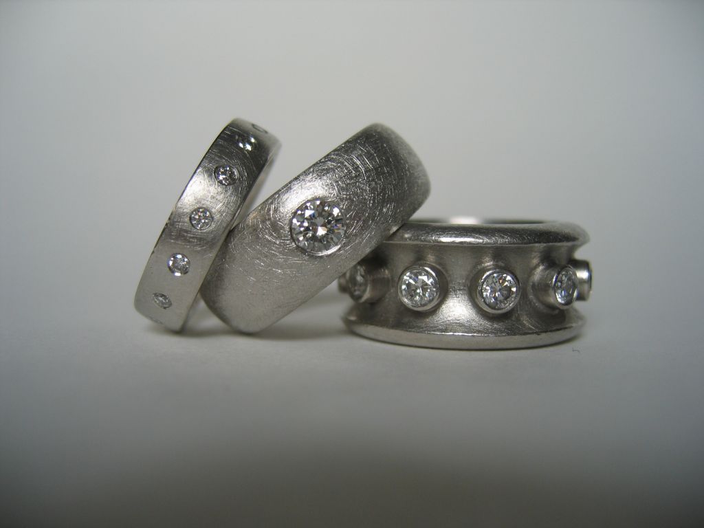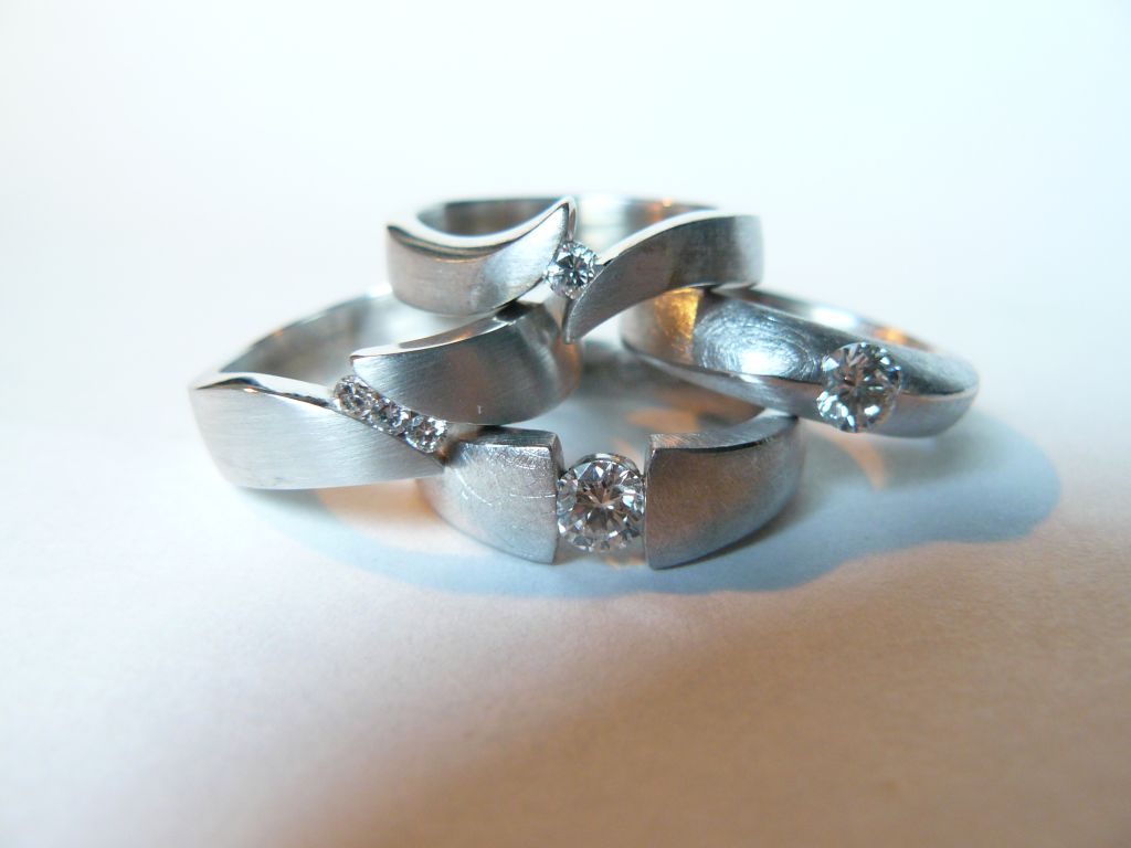 Unsere Ringe werden in Platin, Weißgold, Silber oder auch in Edelstahl angefertigt. Jeder dieser weißen Metalle hat seine eigene typische Farbe.